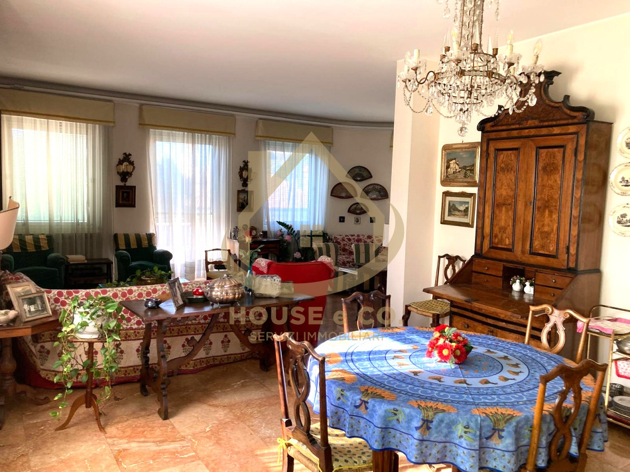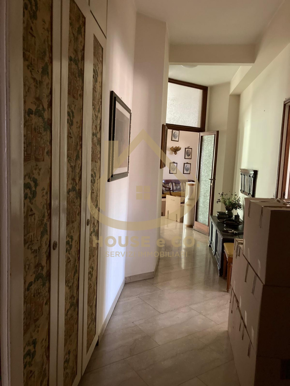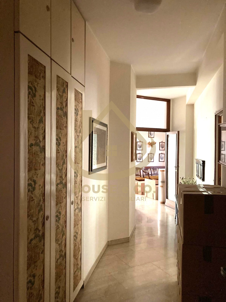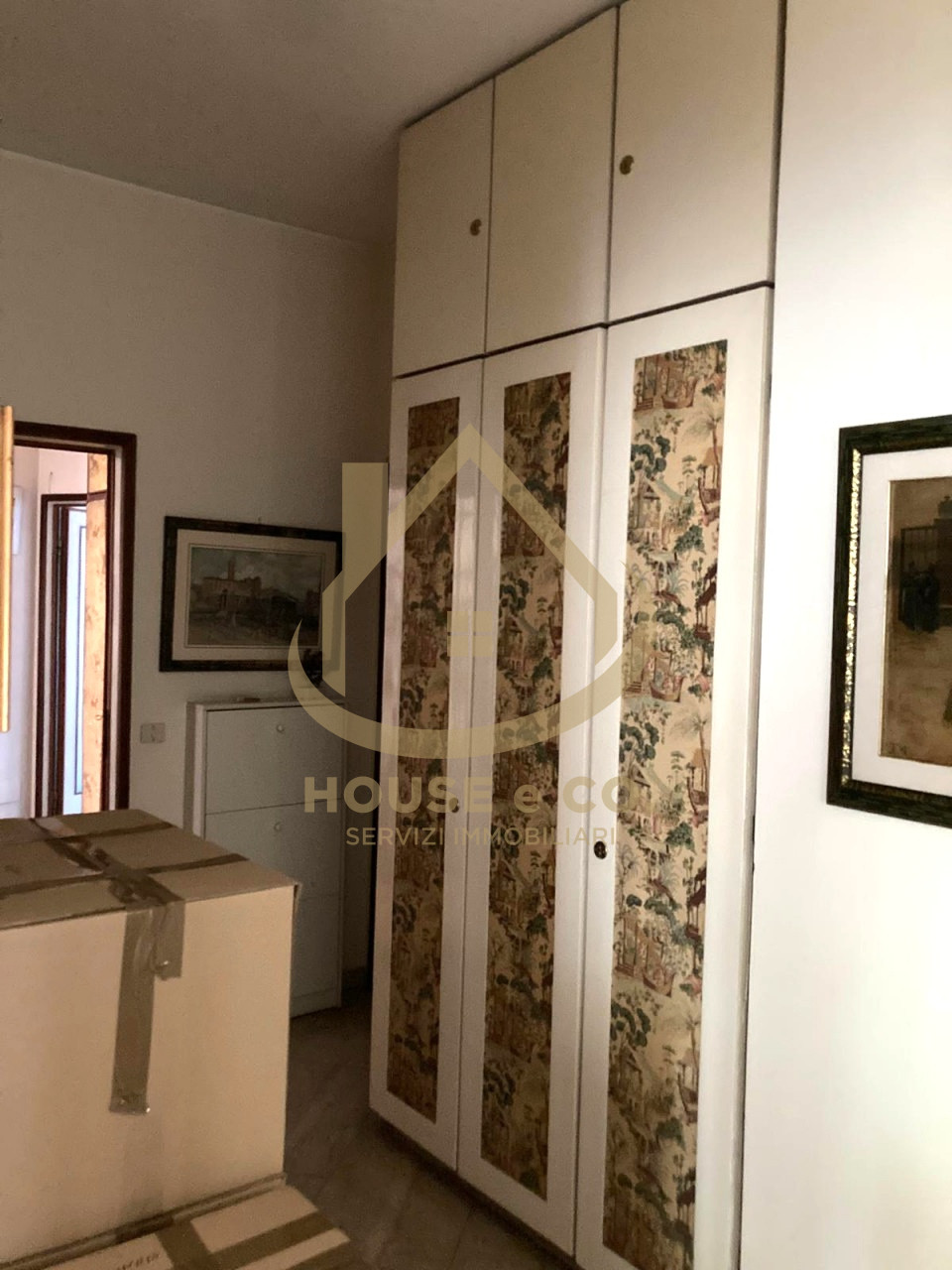 L'appartamento è così composto: doppio ingresso (principale e di servizio), cucina attrezzata con lavastoviglie, frigorifero Hisence con congelatore a cassetti, forno a gas, annesso salottino/sala da pranzo con televisione e balcone, grande e luminosissimo soggiorno con sala da pranzo e doppio balcone, una grande camera da letto matrimoniale con letto contenitore e telecomando, nuovo e alto materasso in lattice matrimoniale, all'interno della camera da letto matrimoniale c'è una cabina armadio e un ampio e luminoso bagno con vasca; una camera da letto a due letti singoli con spogliatoio e ampio bagno con doccia e armadio con cassetti; cameretta con bagno di servizio con nuova lavatrice Whirpool e stendini per bucato. Vicino all'ingresso di servizio c'è anche un ripostiglio con armadio, scala e asse da stiro, e nel corridoio della zona notte armadi a muro.