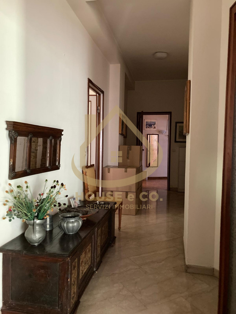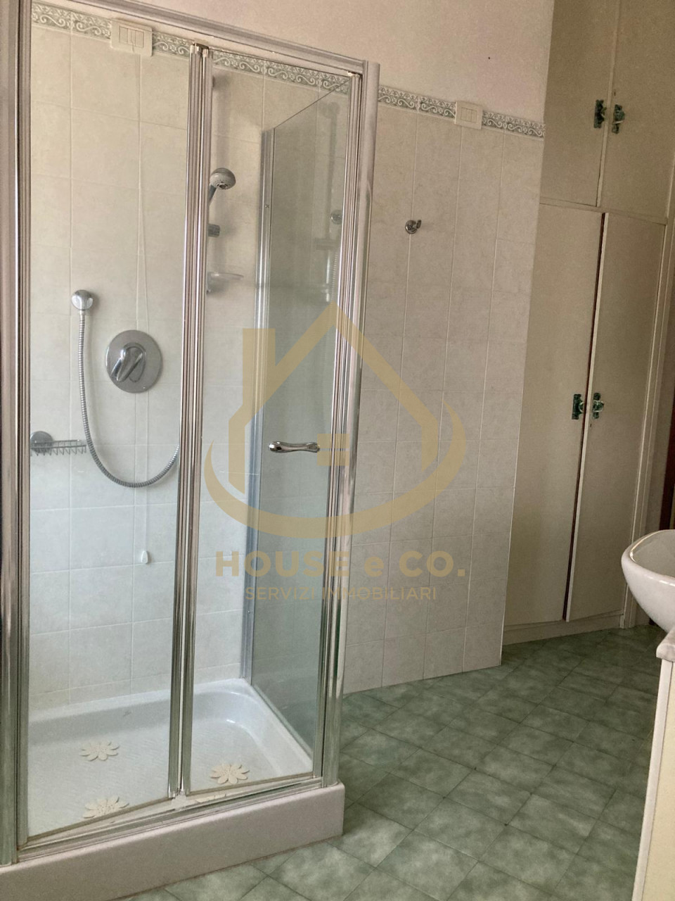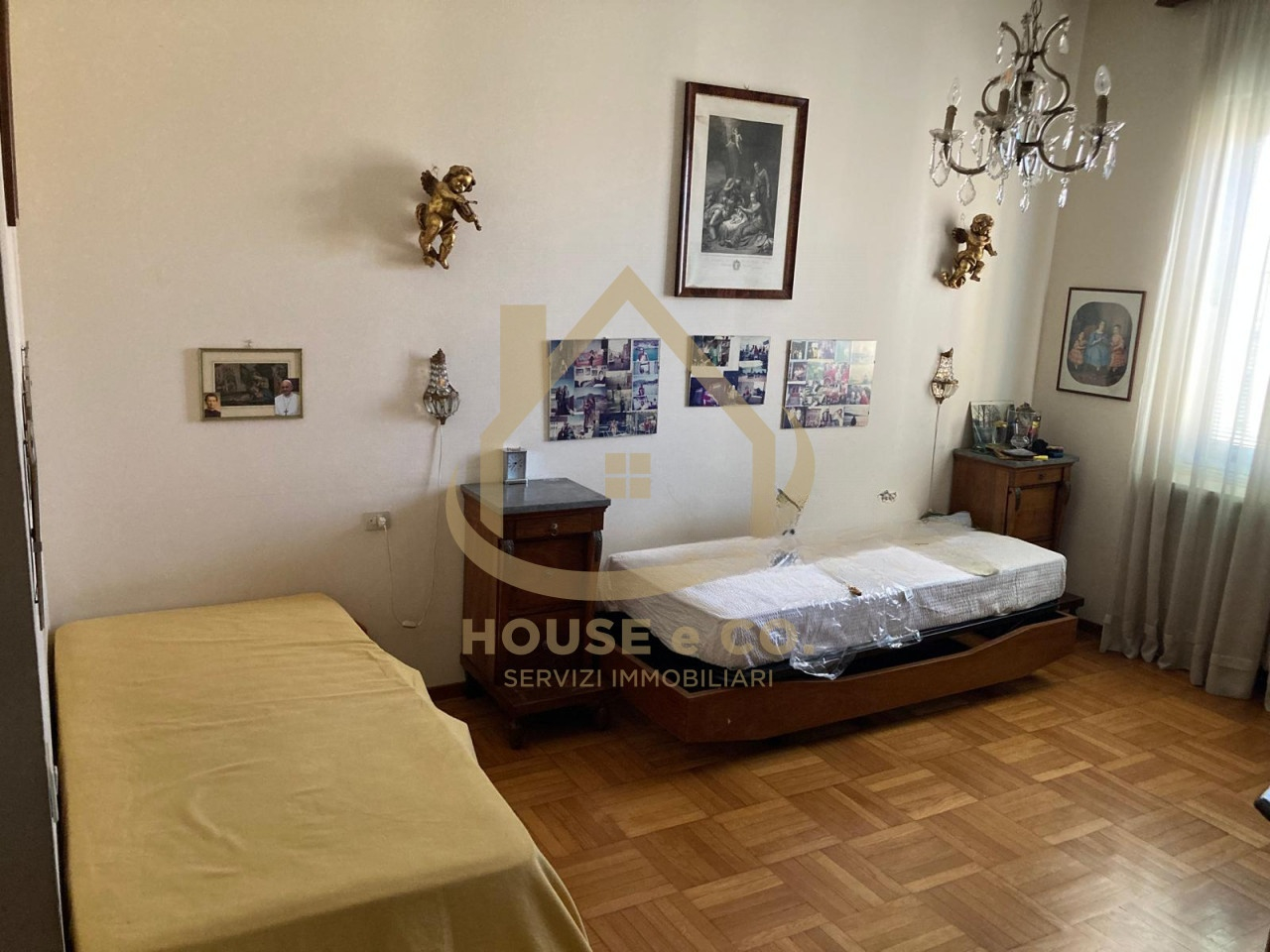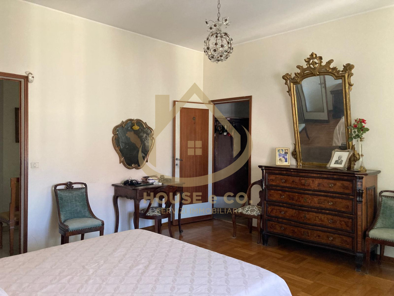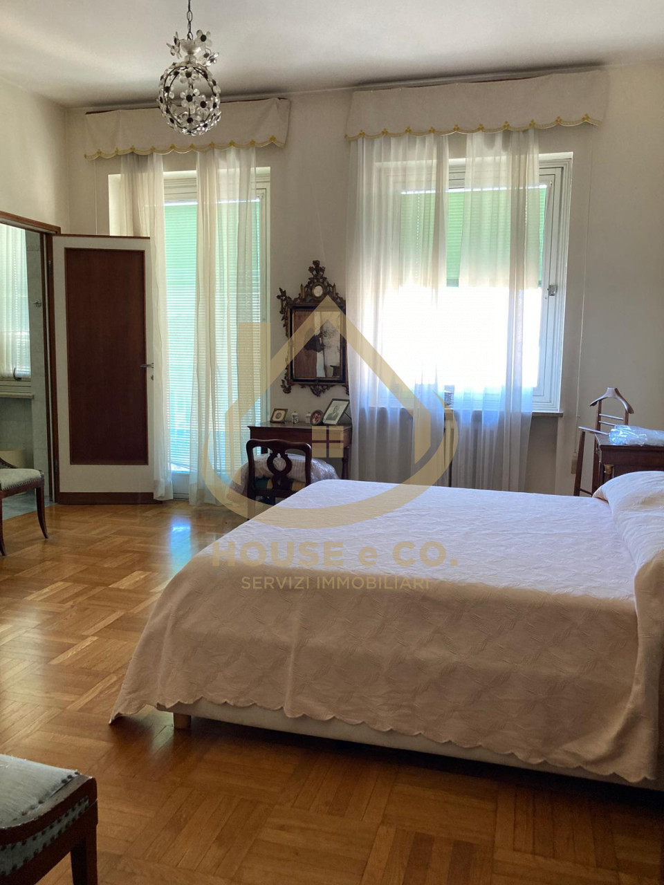 L'appartamento è così composto: doppio ingresso (principale e di servizio), cucina attrezzata con lavastoviglie, frigorifero Hisence con congelatore a cassetti, forno a gas, annesso salottino/sala da pranzo con televisione e balcone, grande e luminosissimo soggiorno con sala da pranzo e doppio balcone, una grande camera da letto matrimoniale con letto contenitore e telecomando, nuovo e alto materasso in lattice matrimoniale, all'interno della camera da letto matrimoniale c'è una cabina armadio e un ampio e luminoso bagno con vasca; una camera da letto a due letti singoli con spogliatoio e ampio bagno con doccia e armadio con cassetti; cameretta con bagno di servizio con nuova lavatrice Whirpool e stendini per bucato. Vicino all'ingresso di servizio c'è anche un ripostiglio con armadio, scala e asse da stiro, e nel corridoio della zona notte armadi a muro.