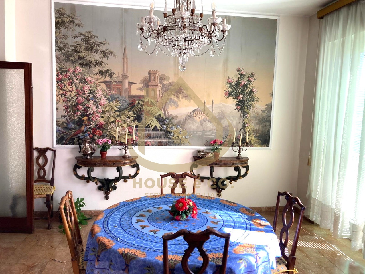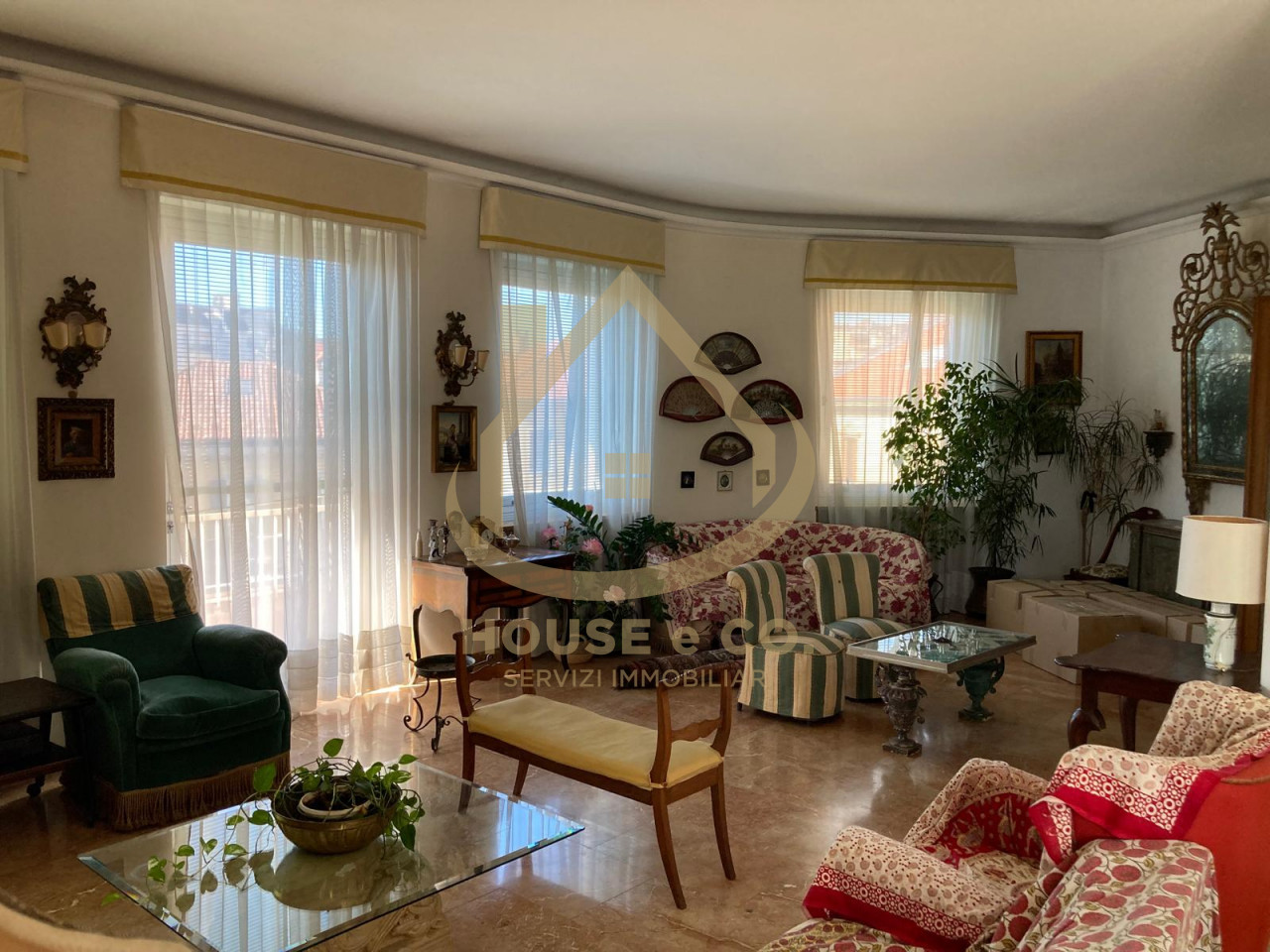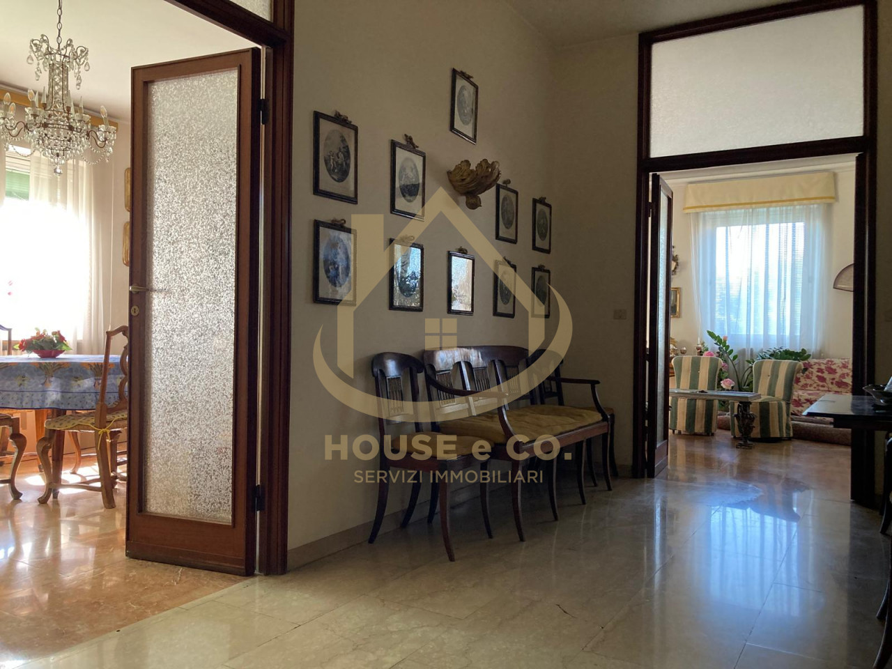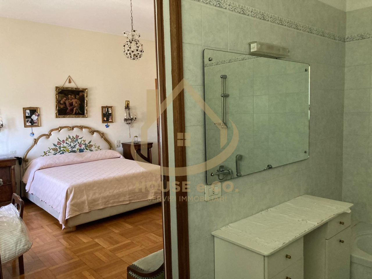 L'appartamento è così composto: doppio ingresso (principale e di servizio), cucina attrezzata con lavastoviglie, frigorifero Hisence con congelatore a cassetti, forno a gas, annesso salottino/sala da pranzo con televisione e balcone, grande e luminosissimo soggiorno con sala da pranzo e doppio balcone, una grande camera da letto matrimoniale con letto contenitore e telecomando, nuovo e alto materasso in lattice matrimoniale, all'interno della camera da letto matrimoniale c'è una cabina armadio e un ampio e luminoso bagno con vasca; una camera da letto a due letti singoli con spogliatoio e ampio bagno con doccia e armadio con cassetti; cameretta con bagno di servizio con nuova lavatrice Whirpool e stendini per bucato. Vicino all'ingresso di servizio c'è anche un ripostiglio con armadio, scala e asse da stiro, e nel corridoio della zona notte armadi a muro.