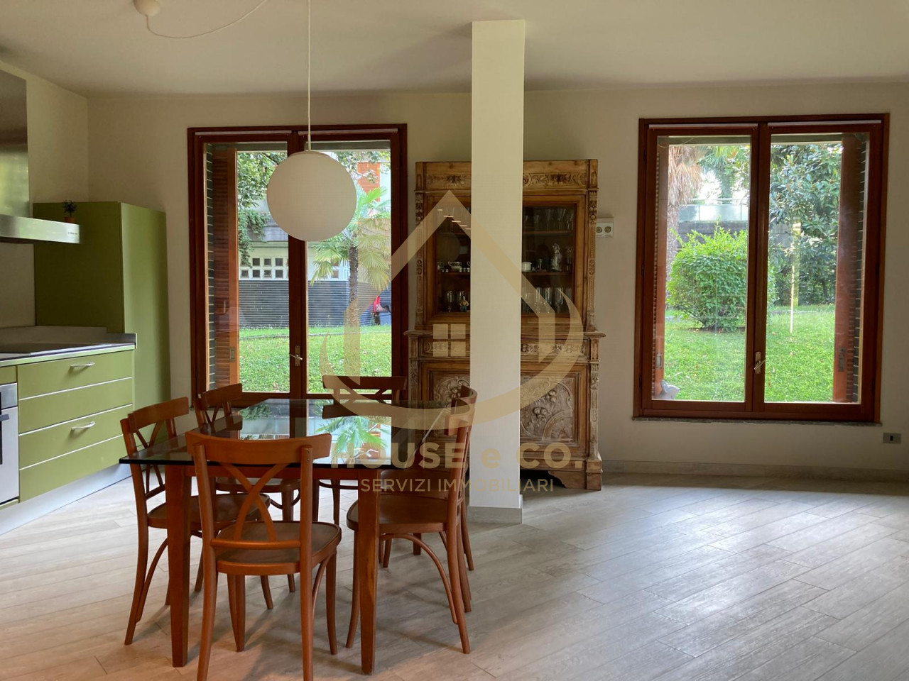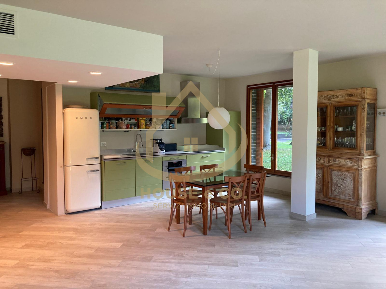 Oltre ad una bella porzione di giardino privato, che gira su due lati e mezzo dell'appartamento, ed in parte piastrellato per potere mangiare comodamente all'aperto, questa splendida soluzione possiede anche un grande box interrato e una lavanderia condominiale adiacente l'ingresso dell'appartamento medesimo.