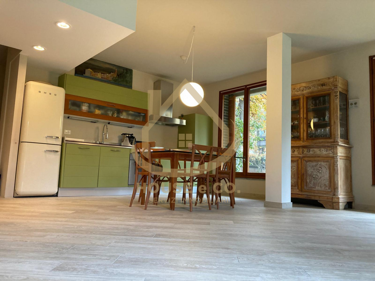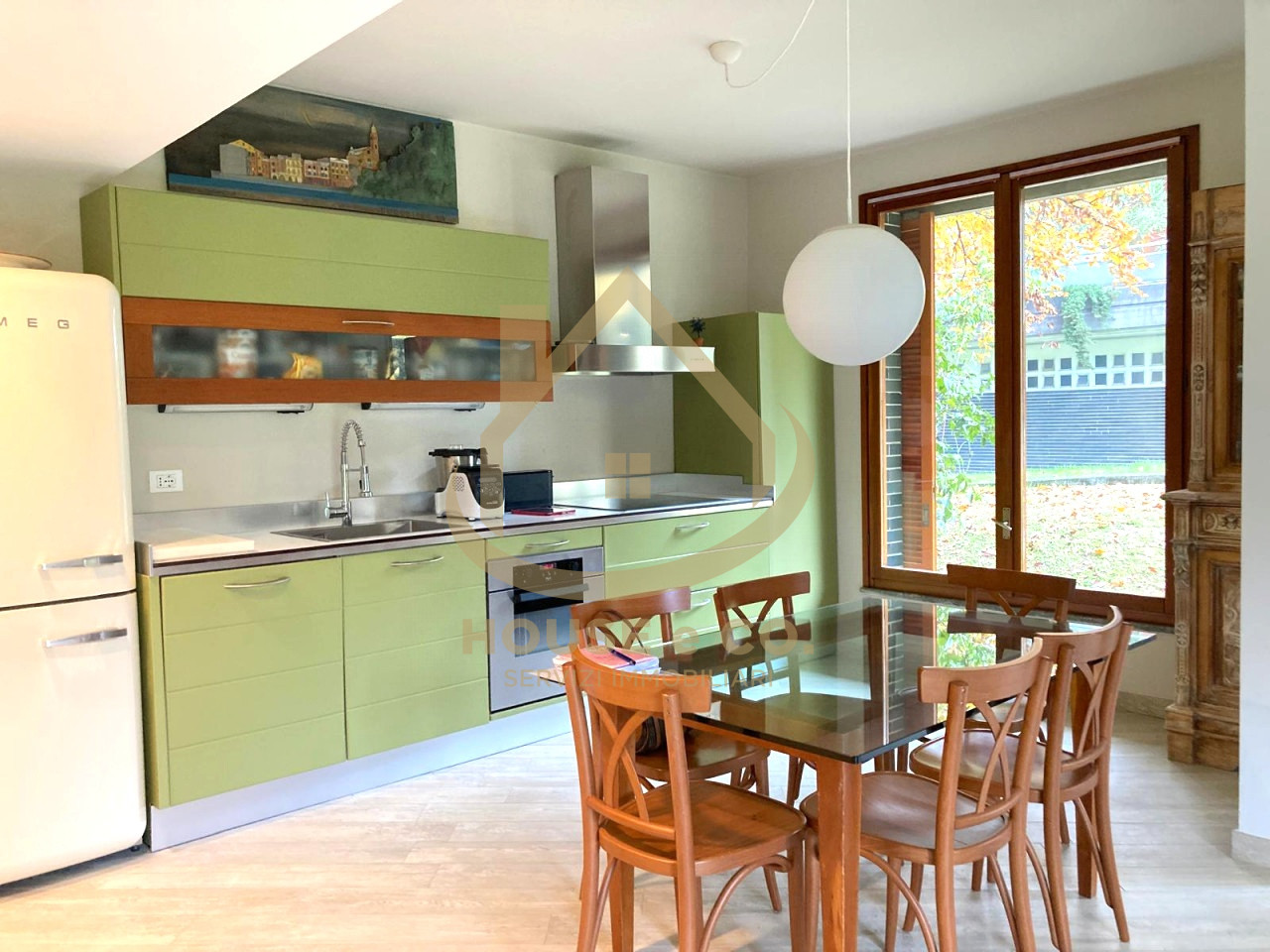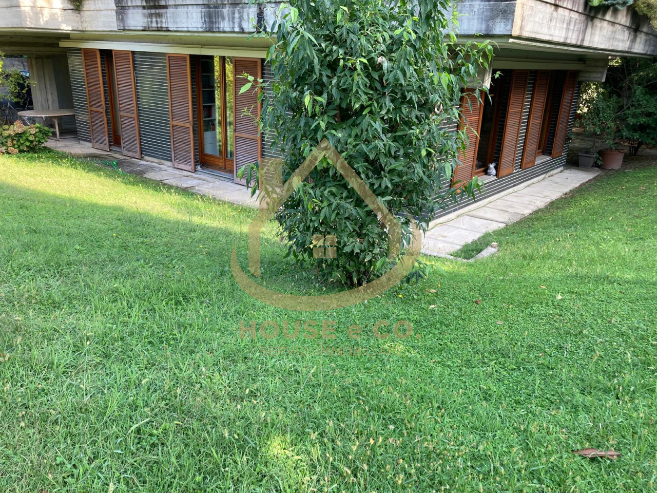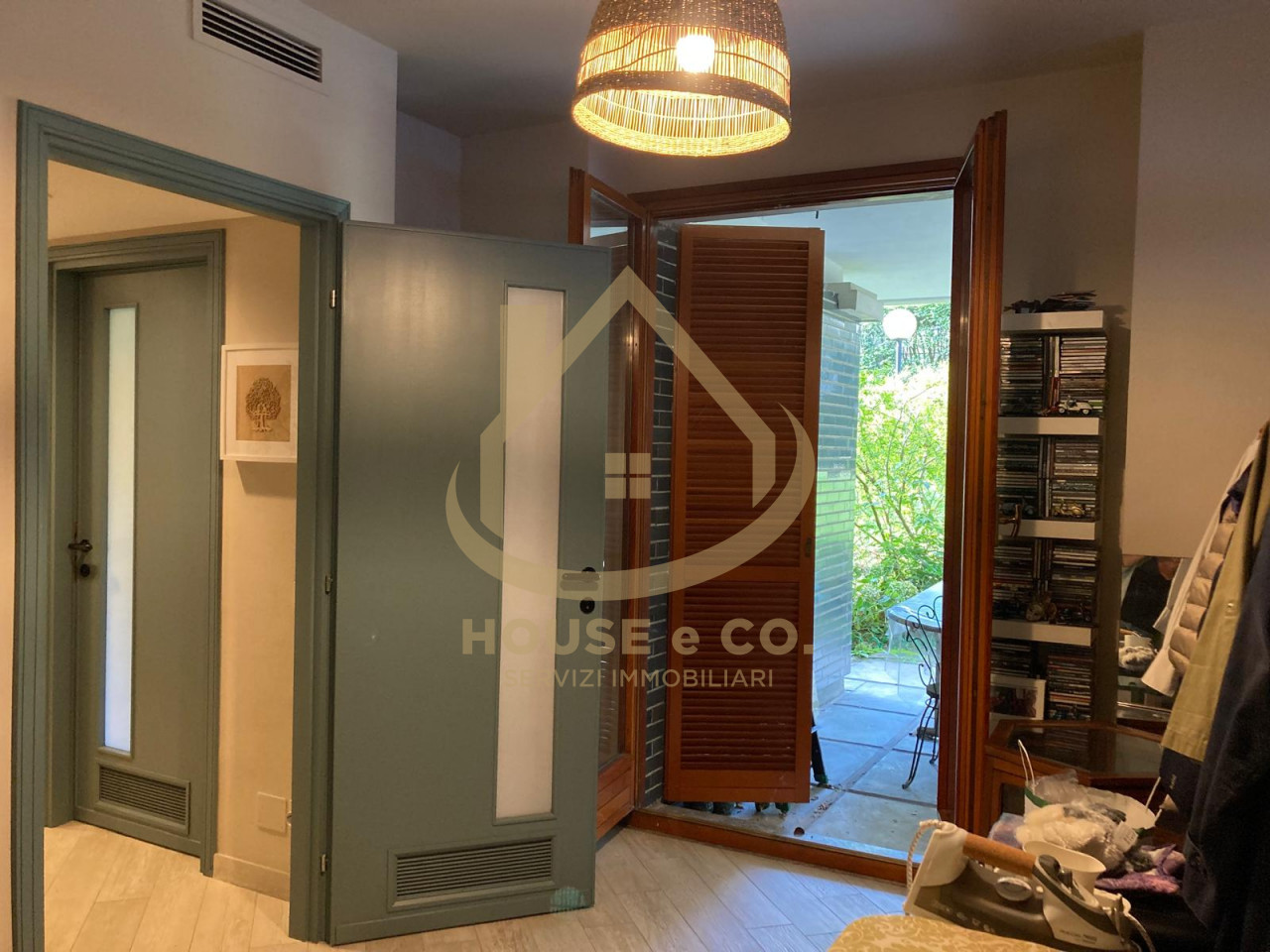 In pieno Centro, all'interno di un verdeggiante e curatissimo residence, HOUSEeCO propone in vendita stupendo trilocale posto al piano terra con giardino e portico di proprietà.